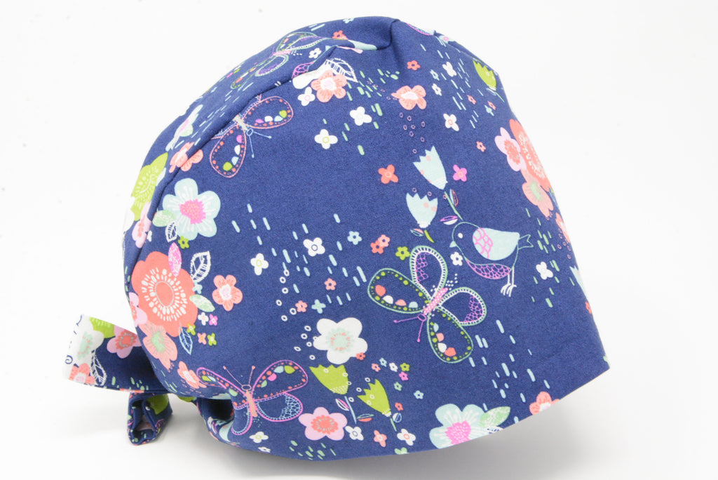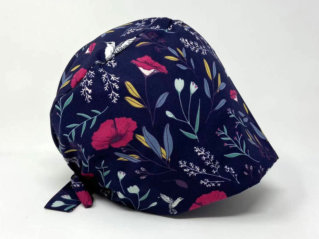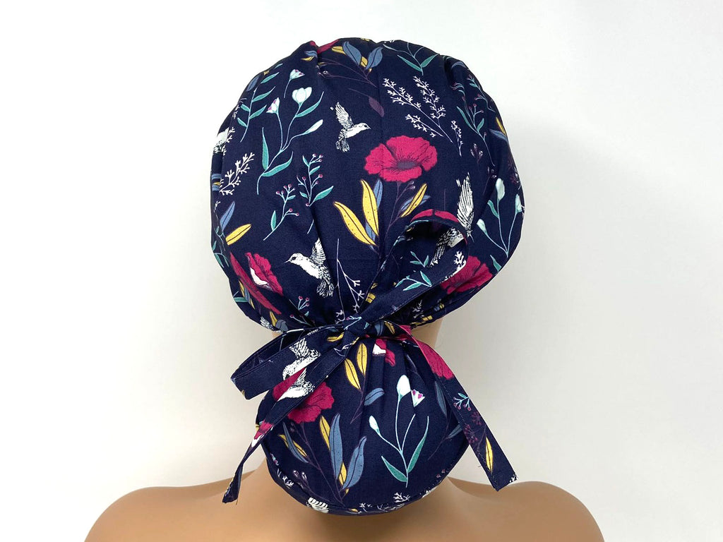 Flowers and Hummingbird on Indigo - Ponytail