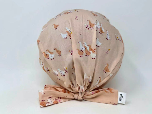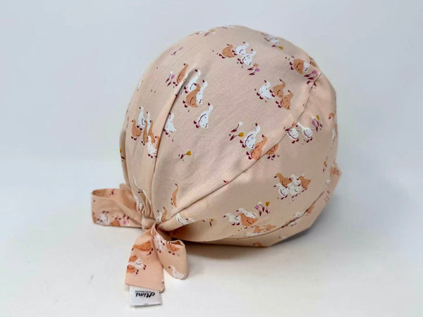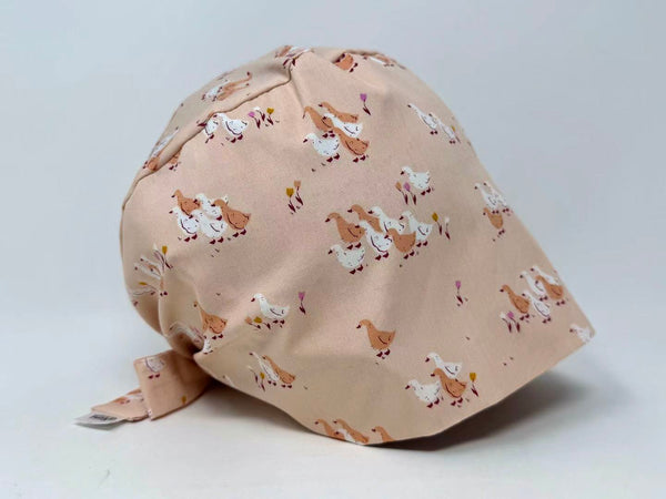 • - Tie back and sewn-in elastic to provide a comfortable fit