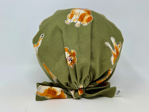 • - Tie back and sewn-in elastic to provide a comfortable fit