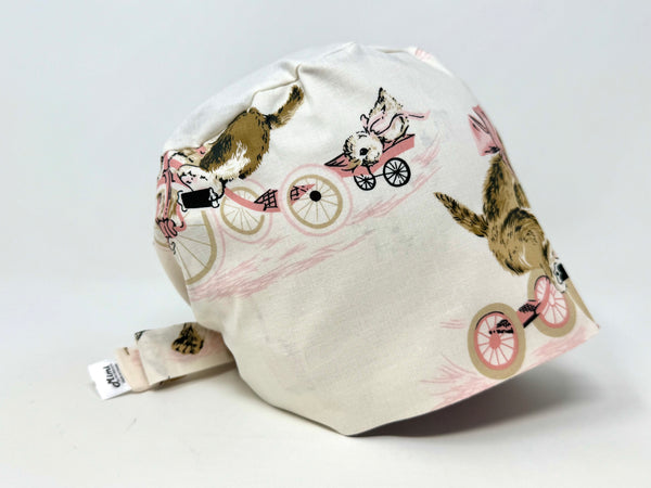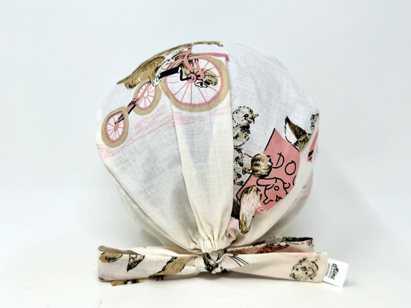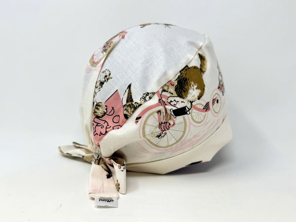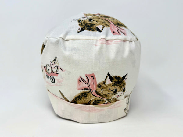 • - Tie back and sewn-in elastic to provide a comfortable fit