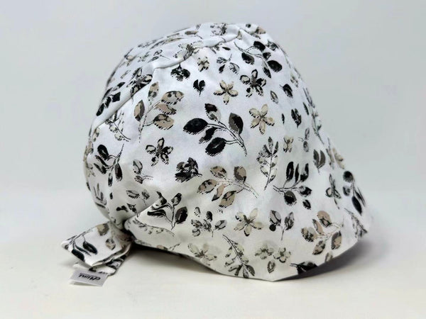 • - Tie back and sewn-in elastic to provide a comfortable fit