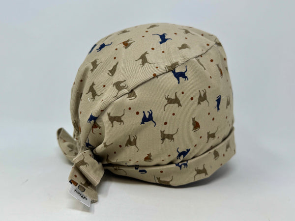 • - Tie back and sewn-in elastic to provide a comfortable fit