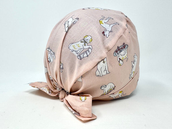 • - Tie back and sewn-in elastic to provide a comfortable fit