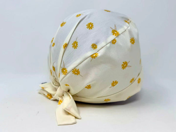 • - Tie back and sewn-in elastic to provide a comfortable fit